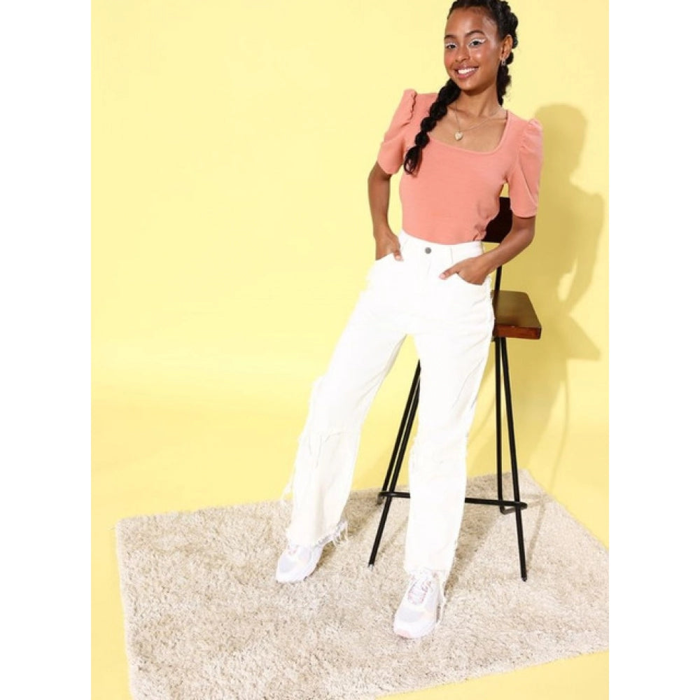 Color: Pink, Material: Polyester Lycra Pattern: Solid, Neck Type: Square Neck, Sleeve Type: Short Sleeve Length Type: Hip Length, Type:Women's Top
